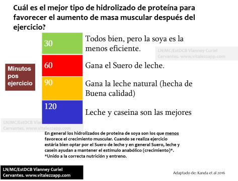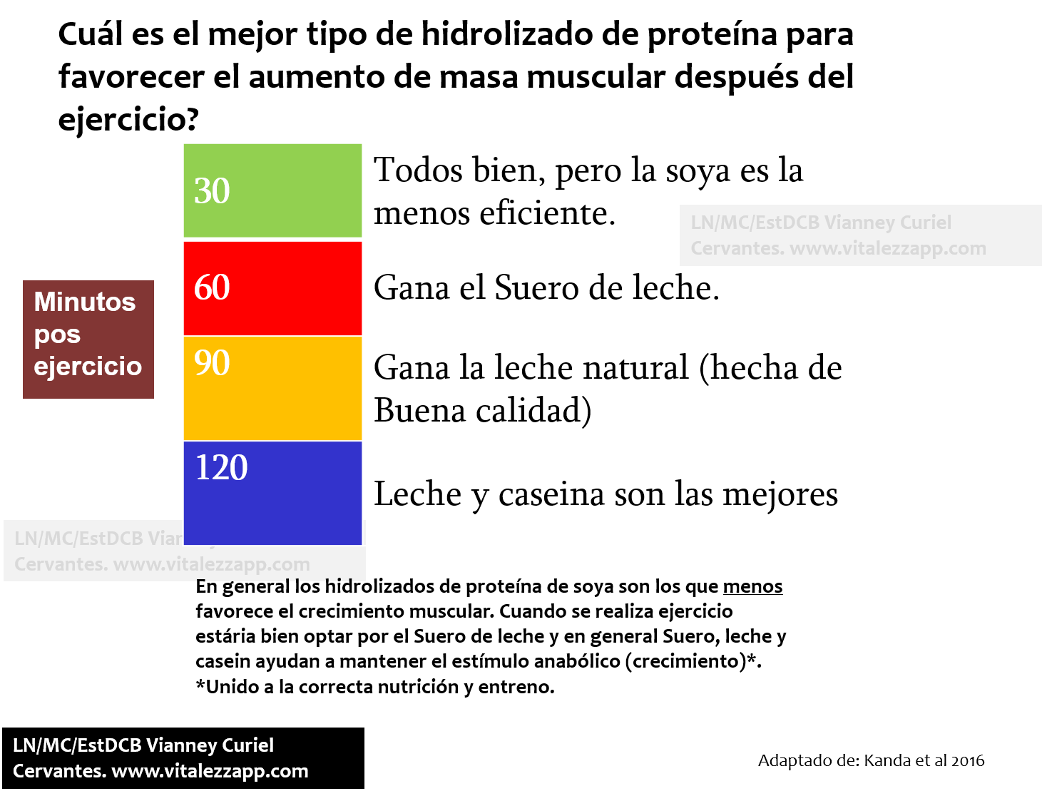 Actualmente hay un uso elevado de los hidrolizados de proteína para el ejercicio. Si bien es correcto que tienen beneficios a la salud y al rendimiento físico, es fundamental estar mejor informados al respecto. En esta ocasión parto de la pregunta: de entre los hidrolizados de caseína, soya, suero de leche o leche natural descremada, quién gana para favorecer el aumento de masa muscular pos-ejercicio? Chequen el cuadro que deriva de estudios hechos en humanos saludables: