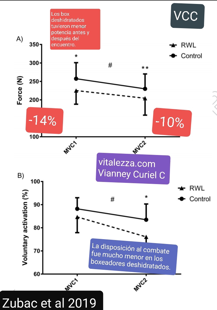 Acá les comparto un ejemplo donde midieron distintos parámetros del rendimiento en boxeadpres olímpicos que hicieron una deshidratación rápida versus aquellos que no. Encontrando cosas interantes como las que ahora describo: