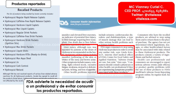 Como pueden observar en cualquier suplemento que tengan en sus manos: «la responsabilidad es de quien lo recomienda y quien lo usa» o como se expresa en la imagen siguiente (corchetes rojos): «estas declaraciones no han sido evaluadas por la FDA. Este producto no intenta diagnosticar, prevenir o curar ninguna enfermedad.