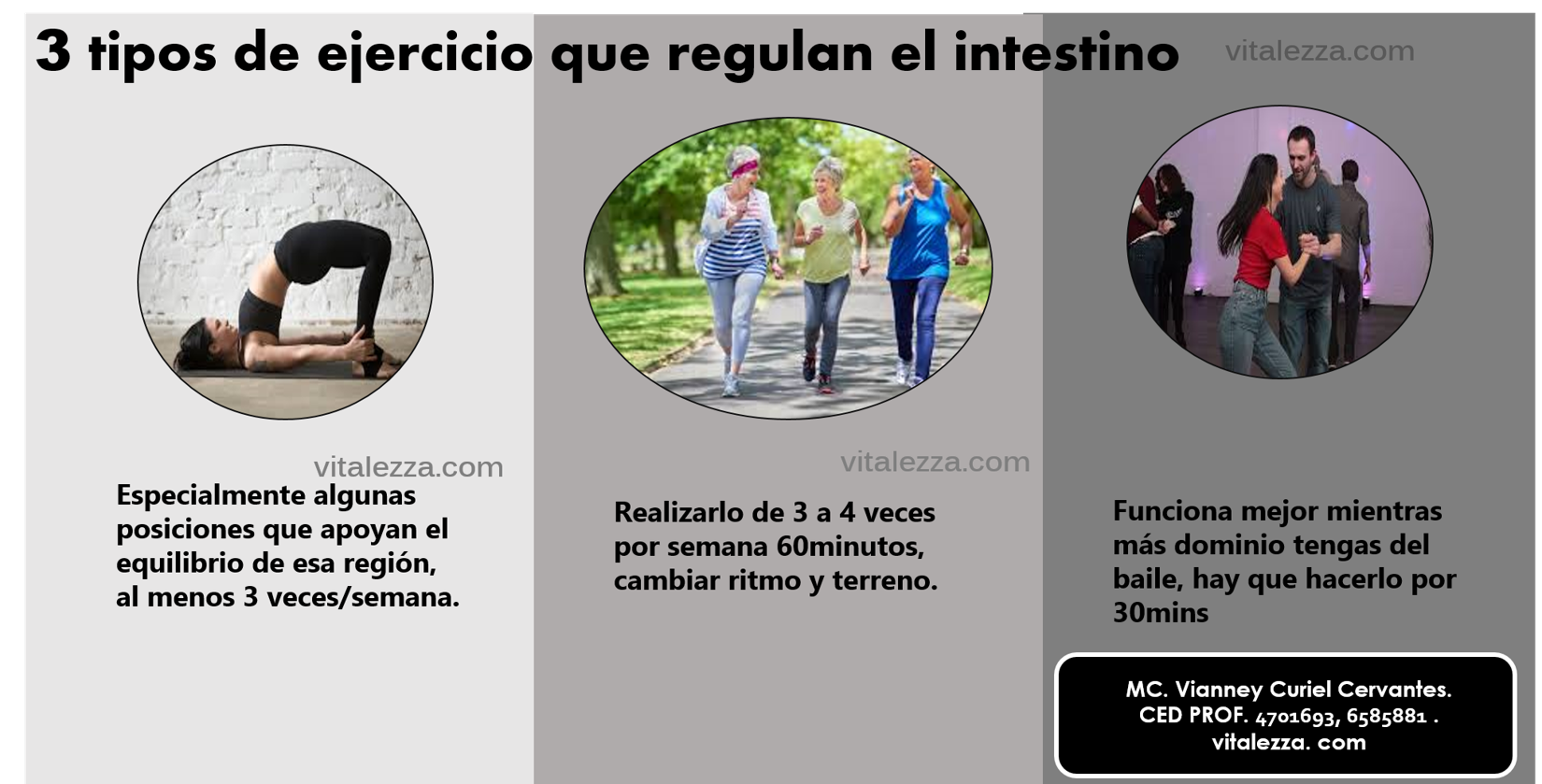 Aquí van 3 RECOMENDACIONES GENERALES de ejercicios que unidos a una adecuada alimentación favorecen la regularidad intestinal, lo mejor es individualizar:
