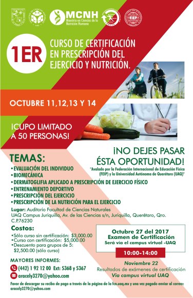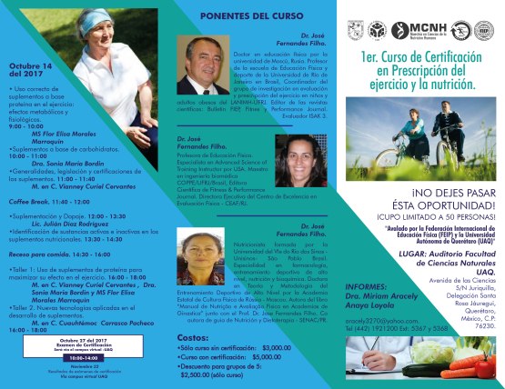 El ejercicio, como he insistido, es una ciencia, y hay que hacerlo responsable y de manera informada para que surta su efecto. Por qué nadar? correr? spinning? cuánto? a qué hora? para qué? Son respuestas que tienen una base científica. Te invito a revisar los siguientes links de este blog que hablan de ejercicio y más abajo encontrarás la información respectiva del curso que llevará a cabo antes del I Simposium sobre Suplementación Deportiva: https://vitalezza.com/2017/09/06/i-simposium-de-suplementacion-deportiva/ y que vale la pena tomar!